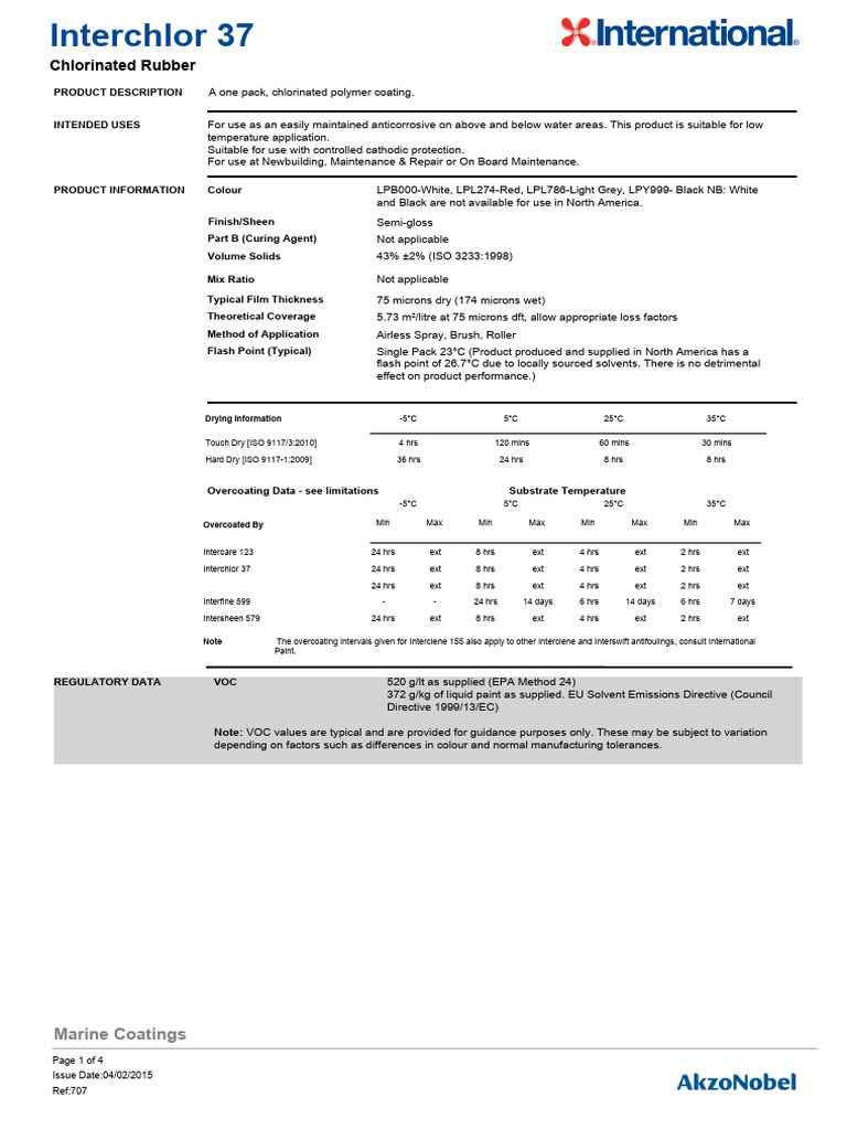 LIMITATIONS Optimum performance is achieved when Interchlor 37 is applied over blasted steel.