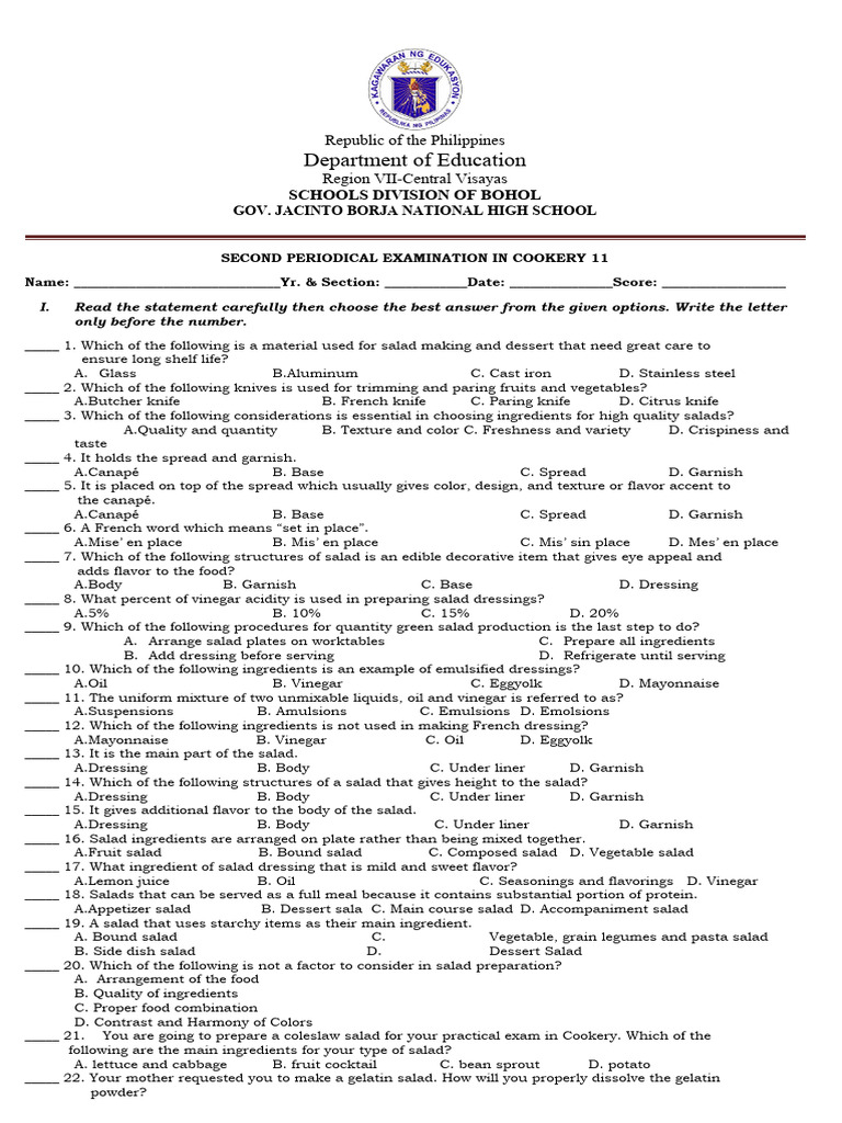 SECOND PERIODICAL EXAMINATION IN COOKERY 11