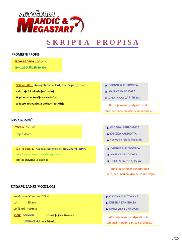 38 pitanja (34 teorija + 4 raskrižja) ► UPLATNICA ( 147,50 kn)