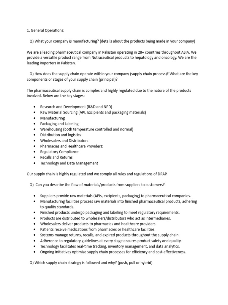 Q) How does the supply chain operate within your company (supply chain process)? What are the key