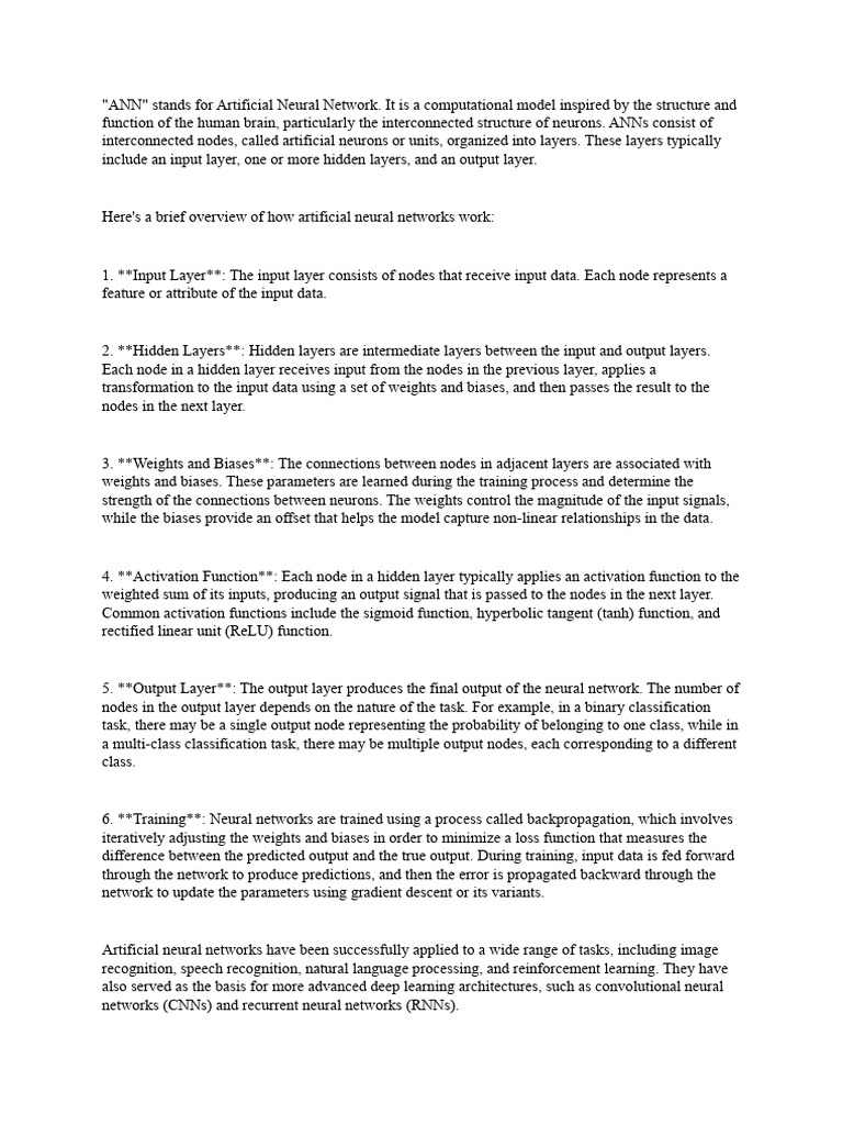 Here's a brief overview of how artificial neural networks work: