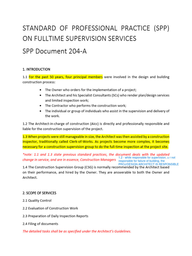 supervisory work to perform the works as enumerated in the Architect’s Guidelines.