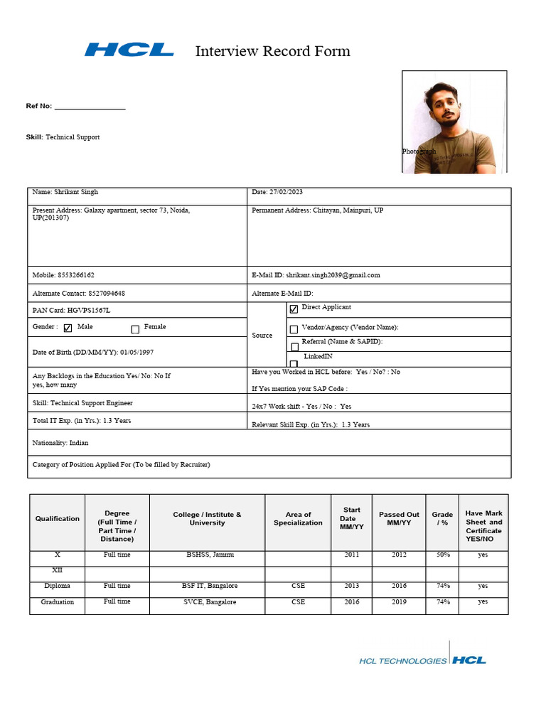 Have you Worked in HCL before: Yes / No? : No