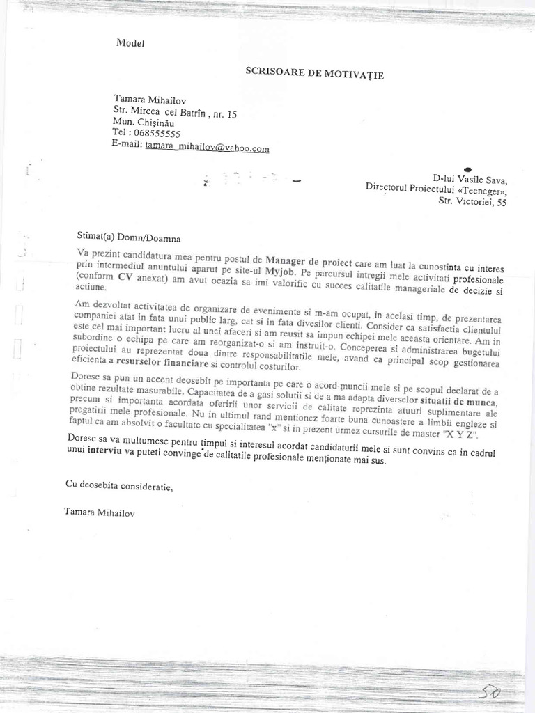 SCRISOARE DE MOTIVATIE