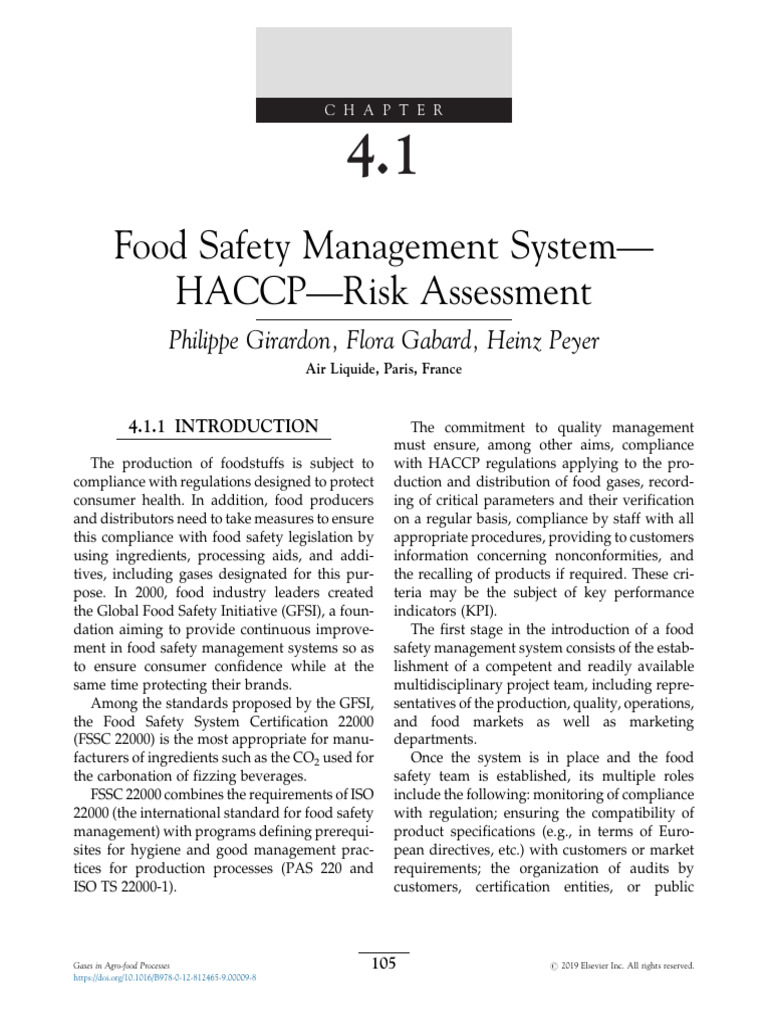 106 4.1. FOOD SAFETY MANAGEMENT SYSTEM—HACCP—RISK ASSESSMENT