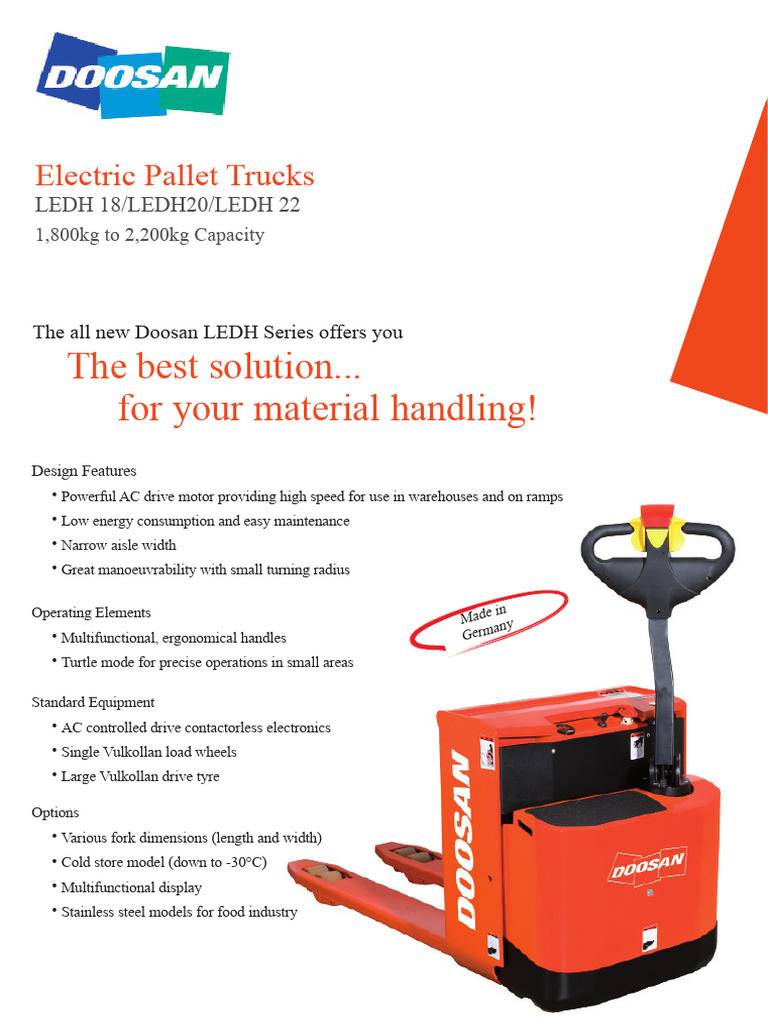 • Powerful AC drive motor providing high speed for use in warehouses and on ramps