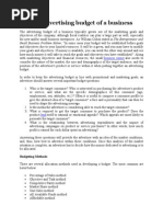 - Budget decided after all other “essential costs taken care of . As a budgeting method involves allocating funds to advertising only
