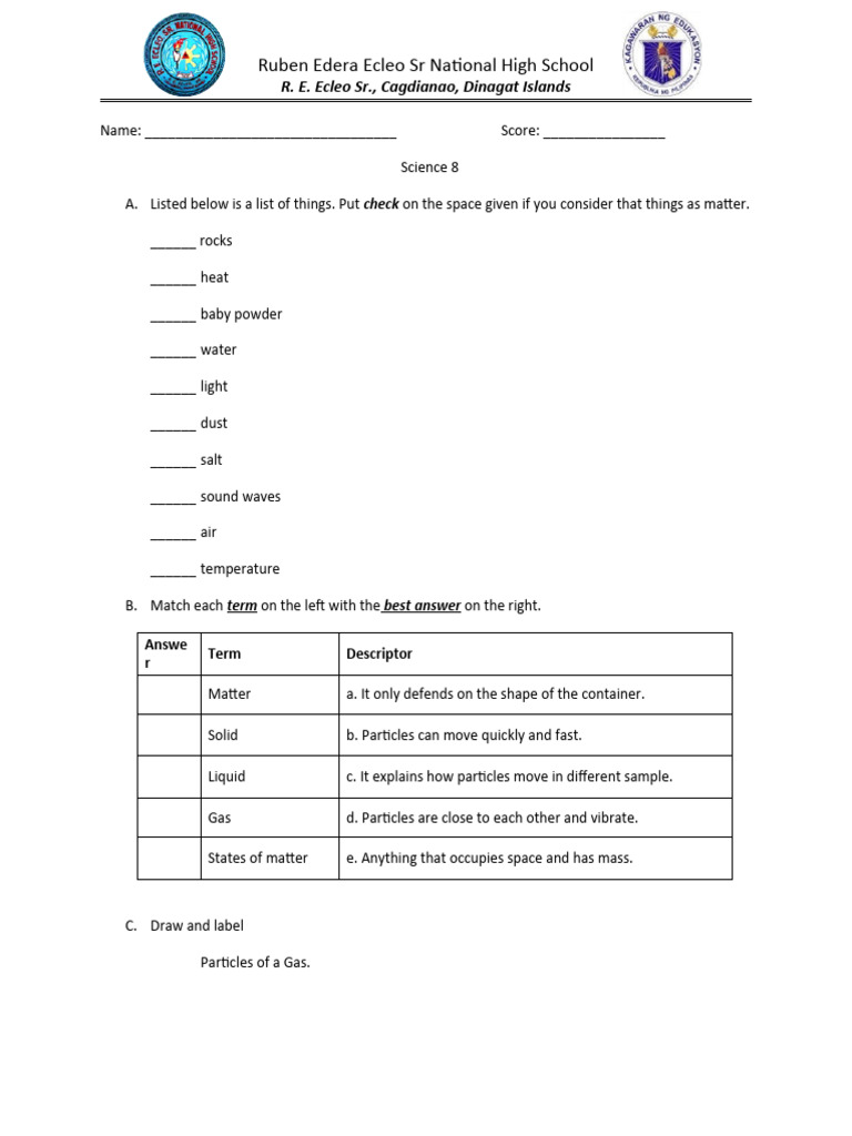 States of matter e. Anything that occupies space and has mass.