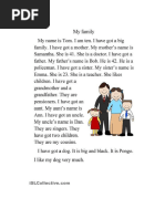 This is my family. My dad's name is John. He has brown hair and wears glasses. He likes to read books and