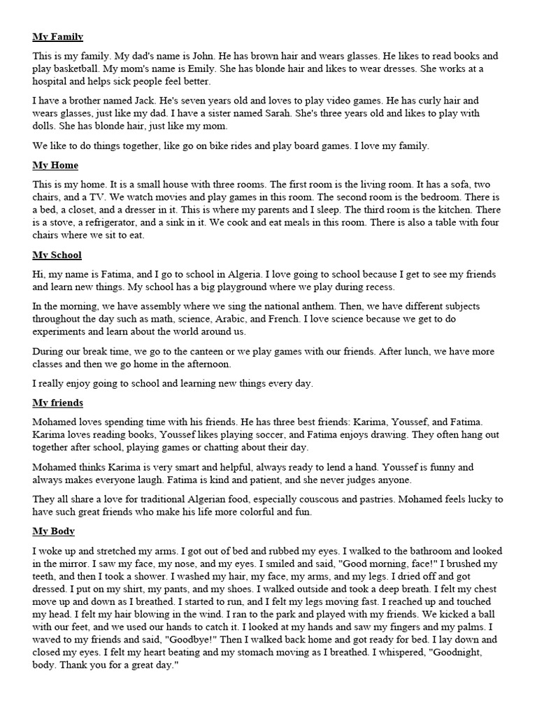 play basketball. My mom's name is Emily. She has blonde hair and likes to wear dresses. She works at a