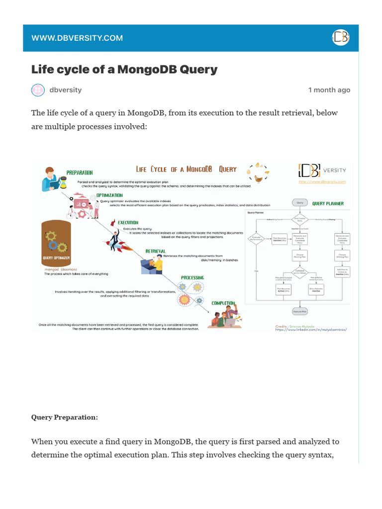 Overall, MongoDB’s find query life cycle involves query preparation, optimization,