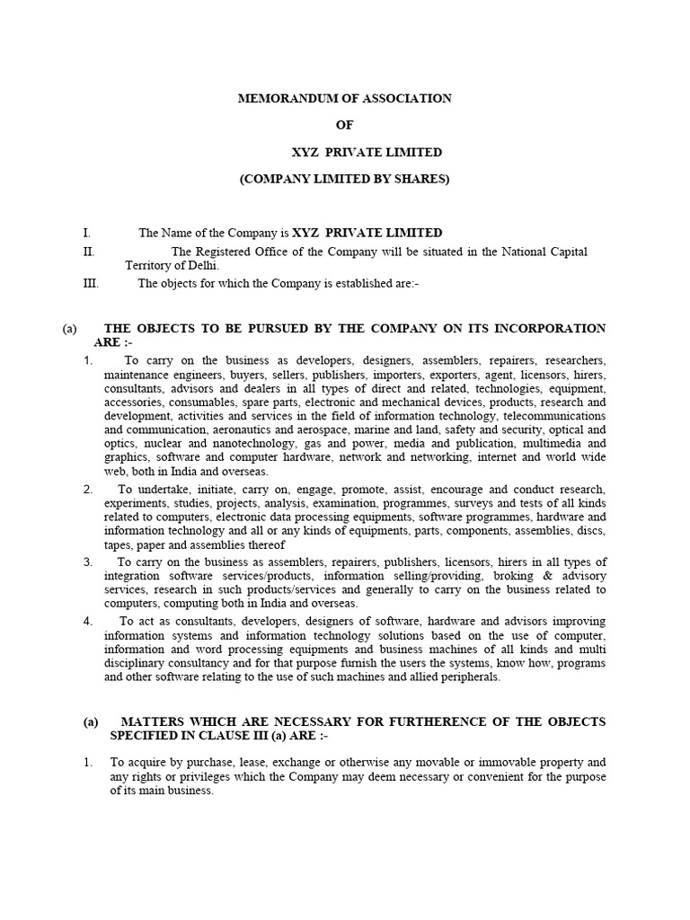 MEMORANDUM OF ASSOCIATION