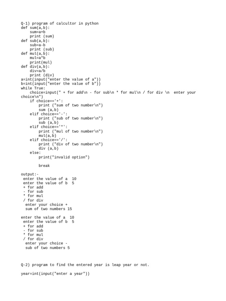 Q-1) program of calcultor in python