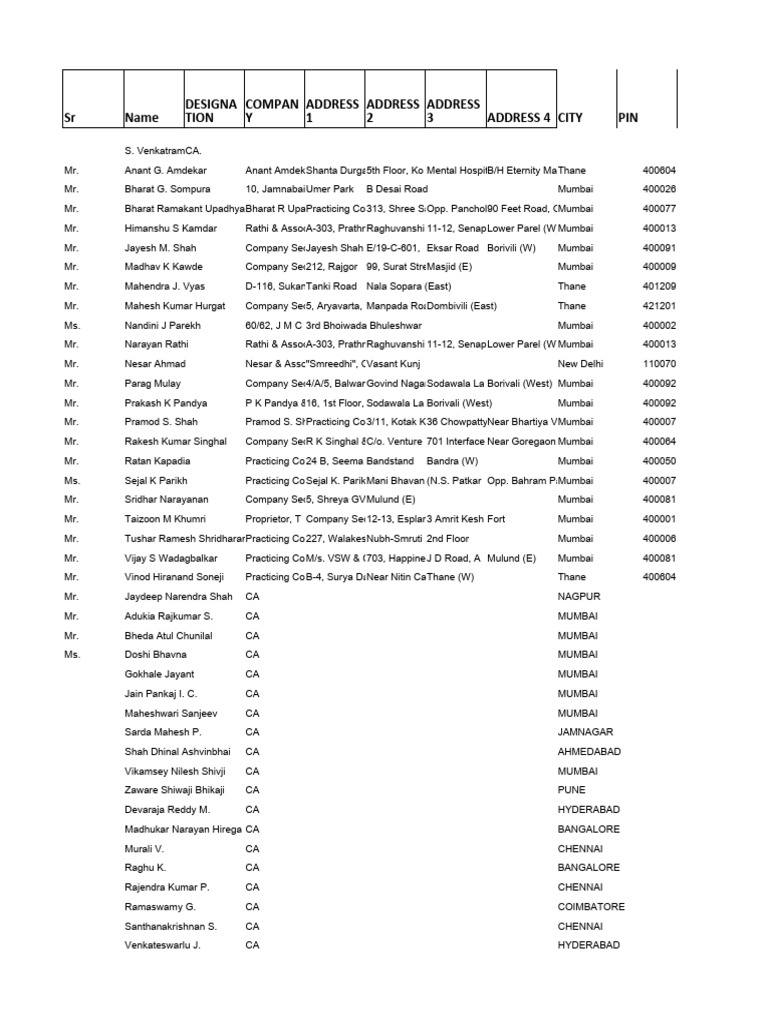 Mr. Pramod S. Shah Pramod S. ShPracticing Co3/11, Kotak K36 ChowpattyNear Bhartiya VMumbai 400007