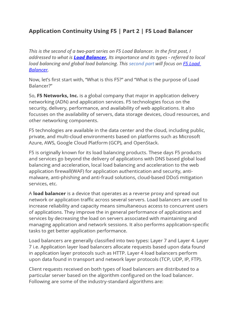 load balancing and global load balancing. This second part will focus on F5 Load