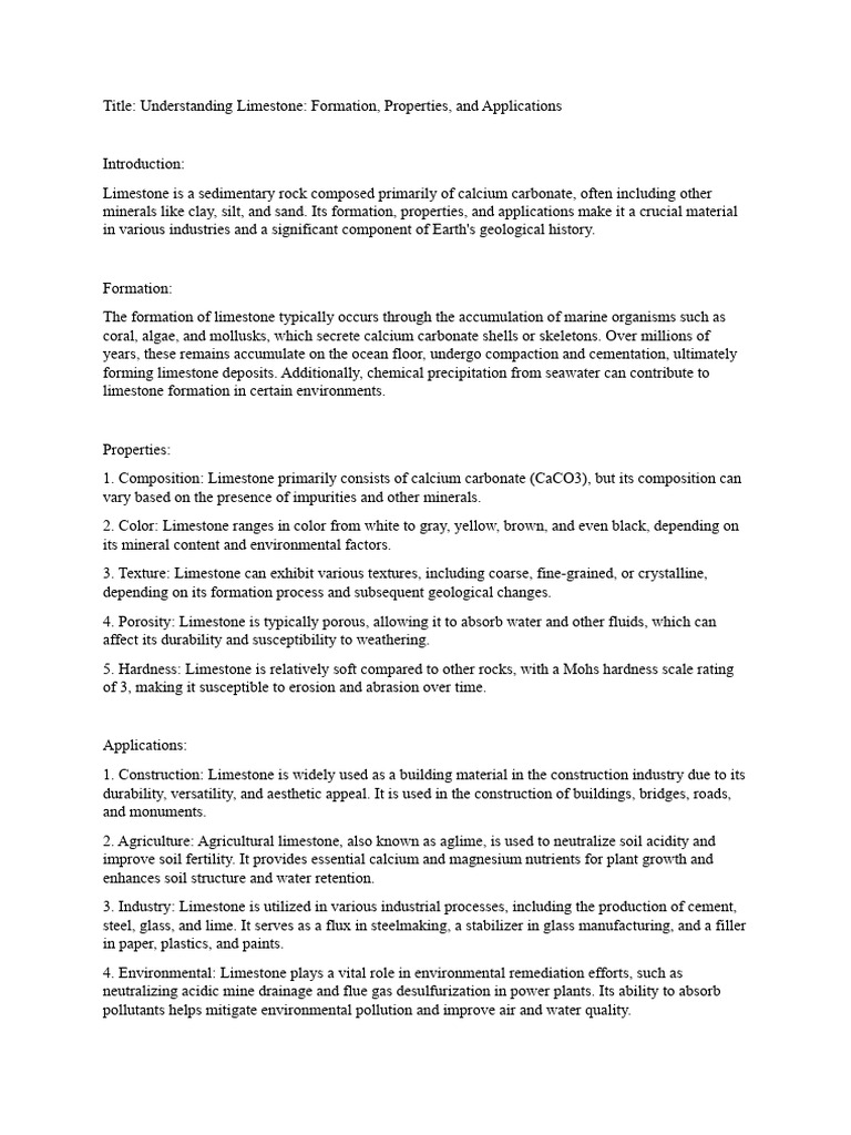 Title: Understanding Limestone: Formation, Properties, and Applications