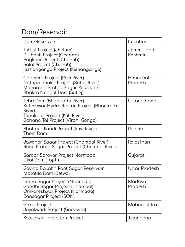 ● Bhakra Nangal reservoir is also known as 'Gobind Sagar'.