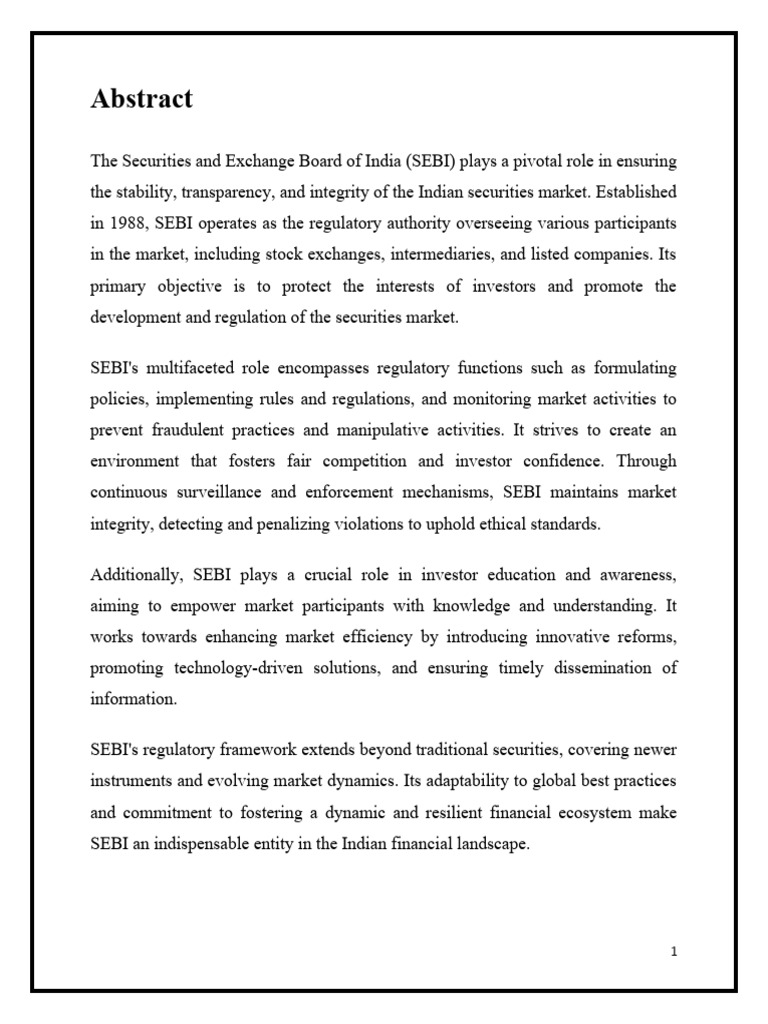 SEBI an indispensable entity in the Indian financial landscape.