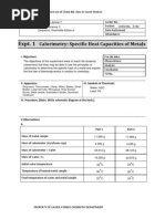 Determine the specific heat of the metal. Assume the heat capacity of the container, a styrofoam cup, is