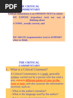 An English Comment is a commentary on an