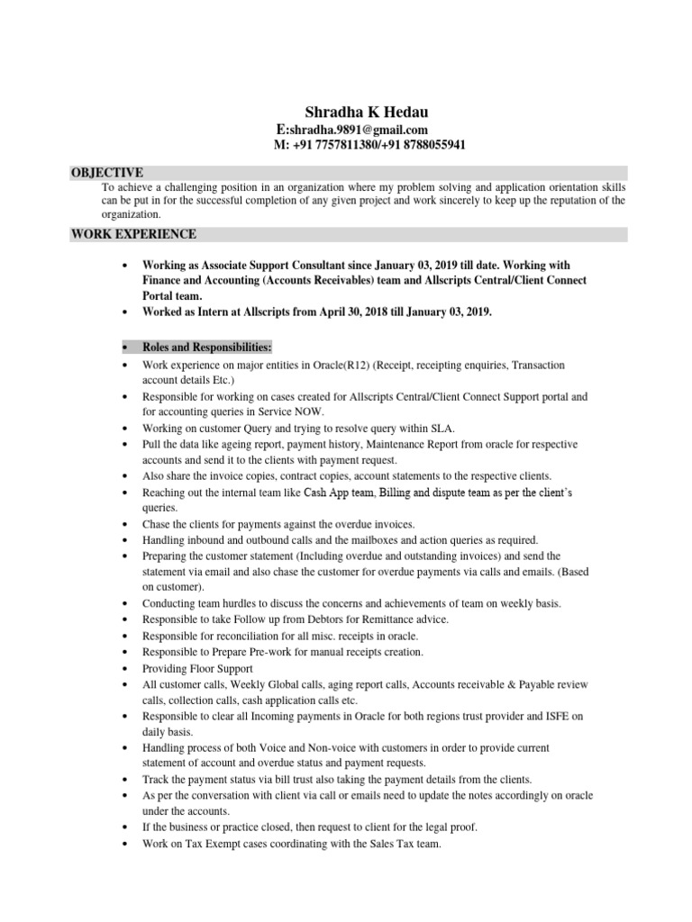 • Work experience on major entities in Oracle(R12) (Receipt, receipting enquiries, Transaction
