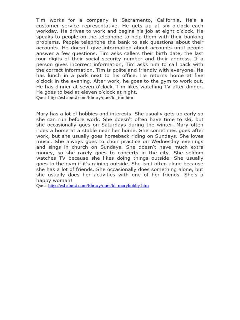 Mary has a lot of hobbies and interests. She usually gets up early so
