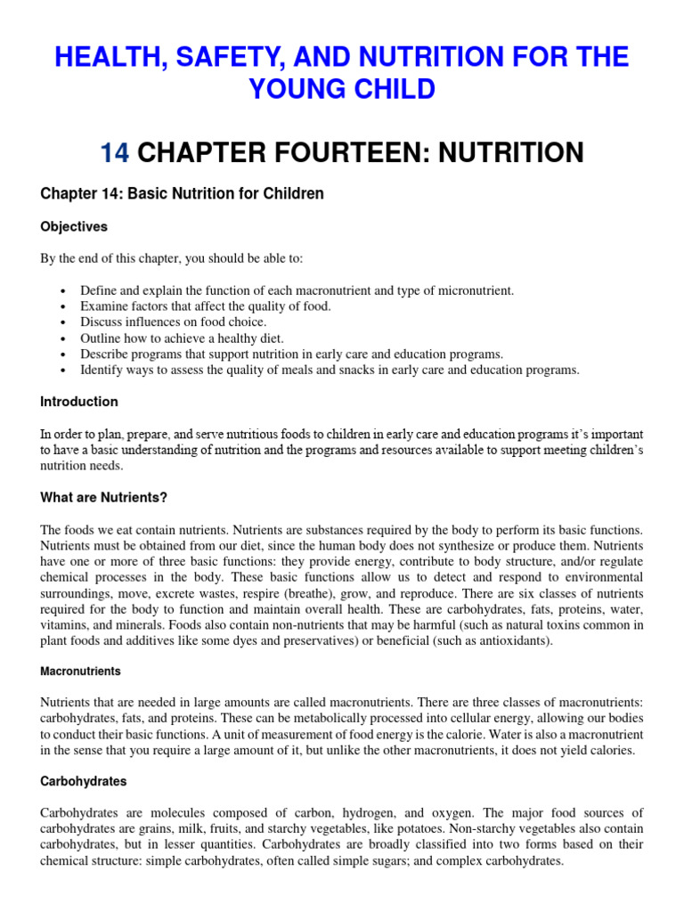 to have a basic understanding of nutrition and the programs and resources available to support meeting children’s