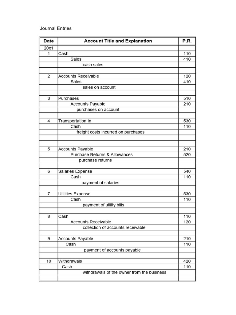 Account Title and Explanation P.R. Debit