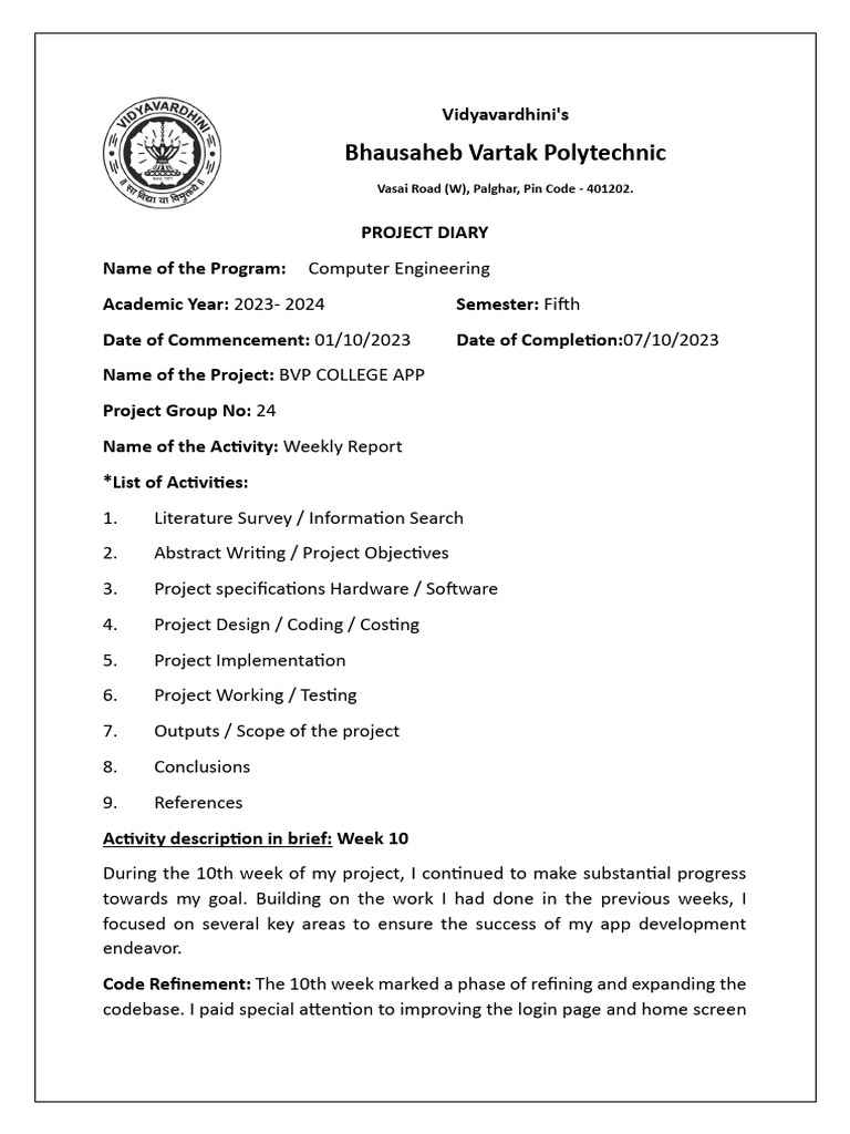 Code Refinement: The 10th week marked a phase of refining and expanding the