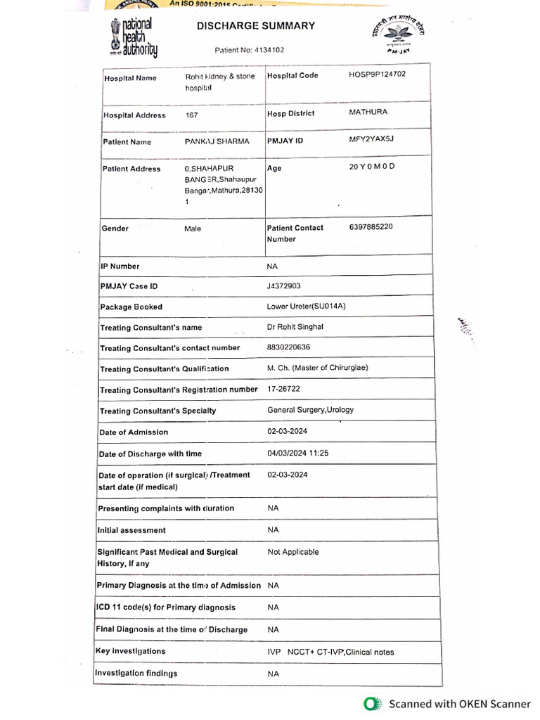 Patlent Name PANKAJ SHARMA |PMJAY ID MFY2YAXSS