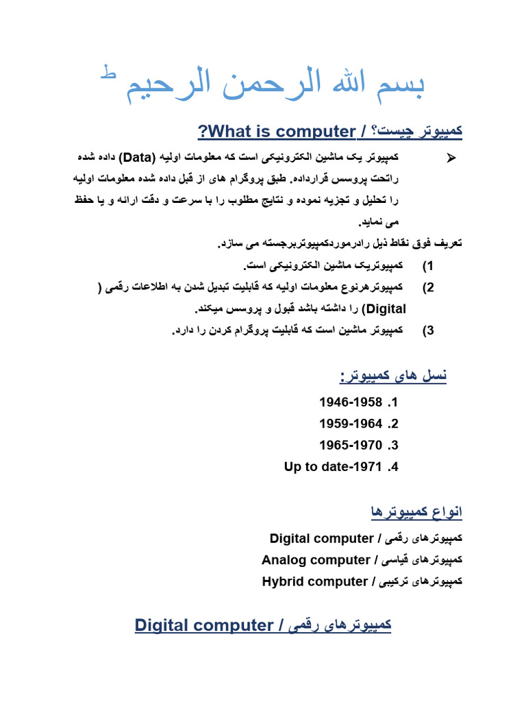 کمپیوتر یک ماشین الکترونیکی است که معلومات اولیه ( )Dataداده شده