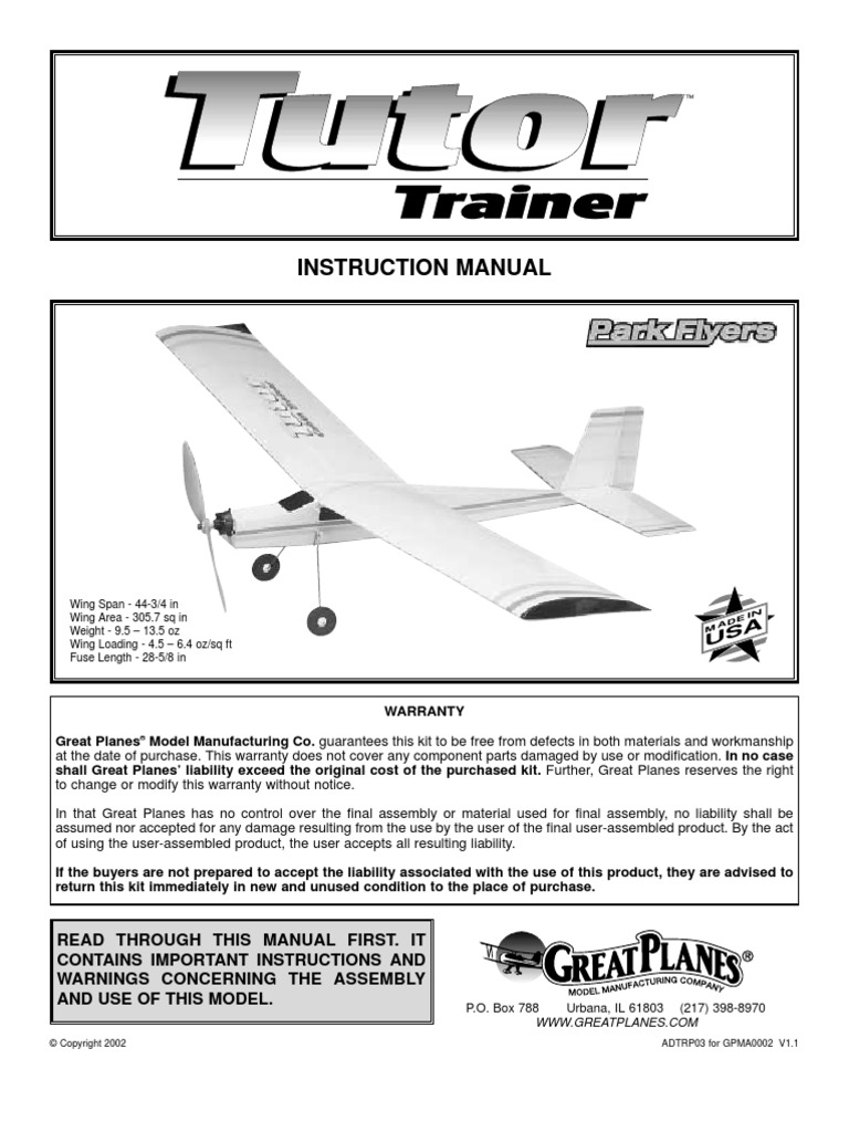 extend the flight time by several minutes, especially if you fly After you have trimmed the Tutor for flight and have become