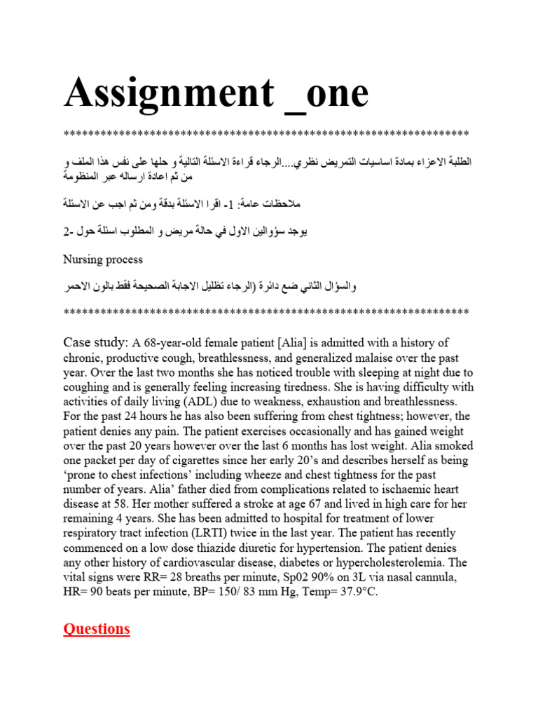 الرجاء قراءة االسئلة التالية و حلها على نفس هذا الملف و....الطلبة االعزاء بمادة اساسيات التمريض نظري