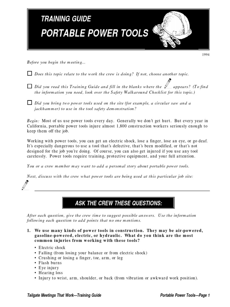 Tailgate Meetings That Work—Training Guide Portable Power Tools—Page 1