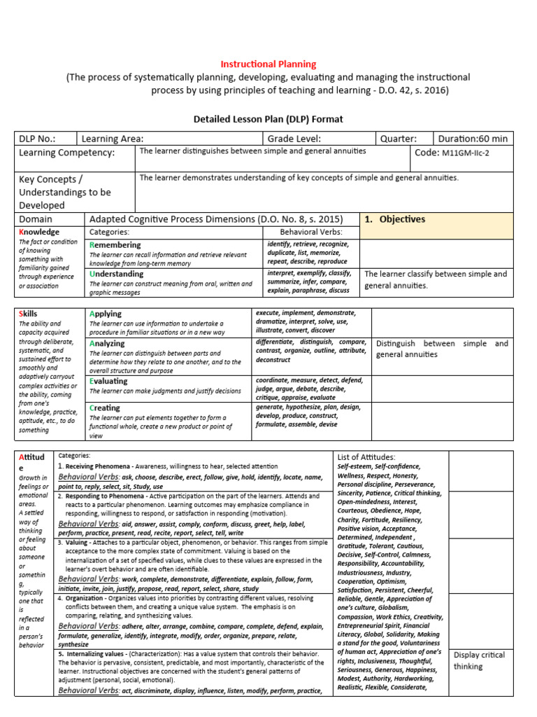 Domain Adapted Cognitive Process Dimensions (D.O. No. 8, s. 2015) 1. Objectives