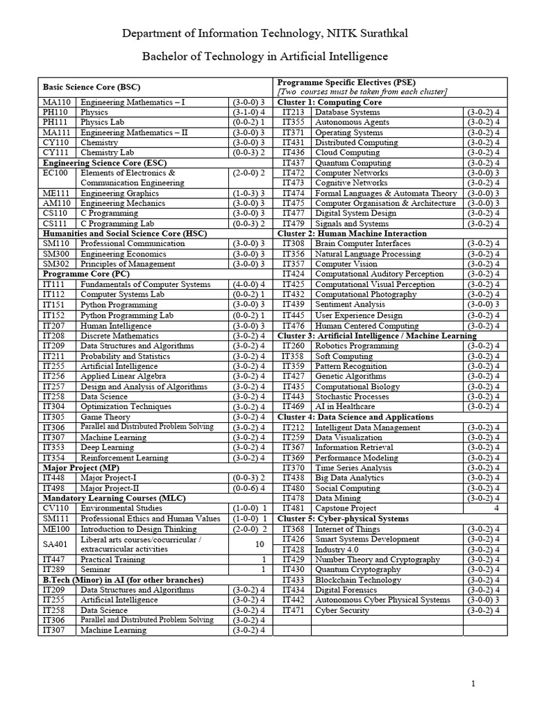 IT255 Artificial Intelligence (3-0-2) 4 IT359 Pattern Recognition (3-0-2) 4