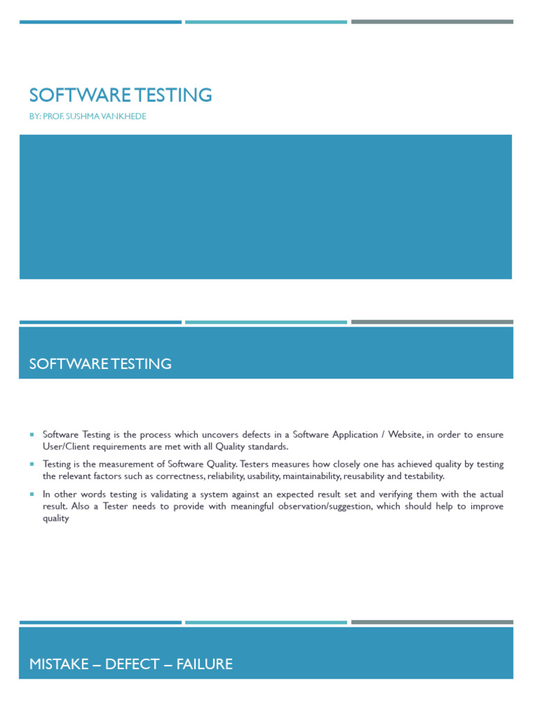 Software Testing is the process which uncovers defects in a Software Application / Website, in order to ensure