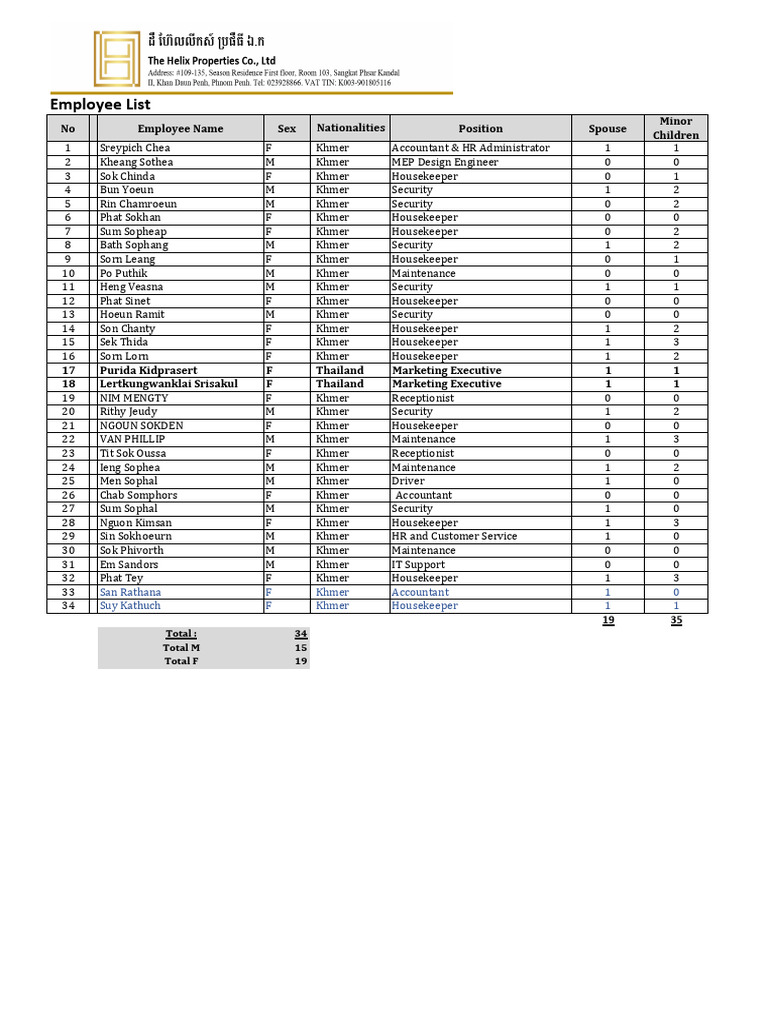 19 NIM MENGTY F Khmer Receptionist 0 0