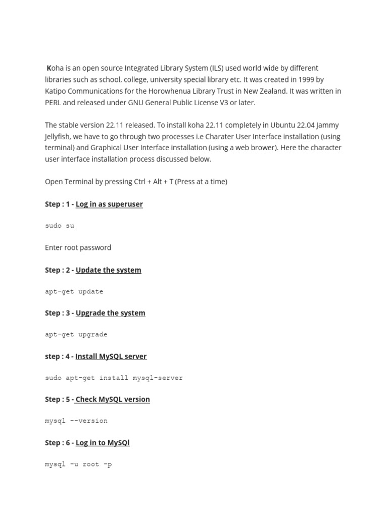 The stable version 22.11 released. To install koha 22.11 completely in Ubuntu 22.04 Jammy