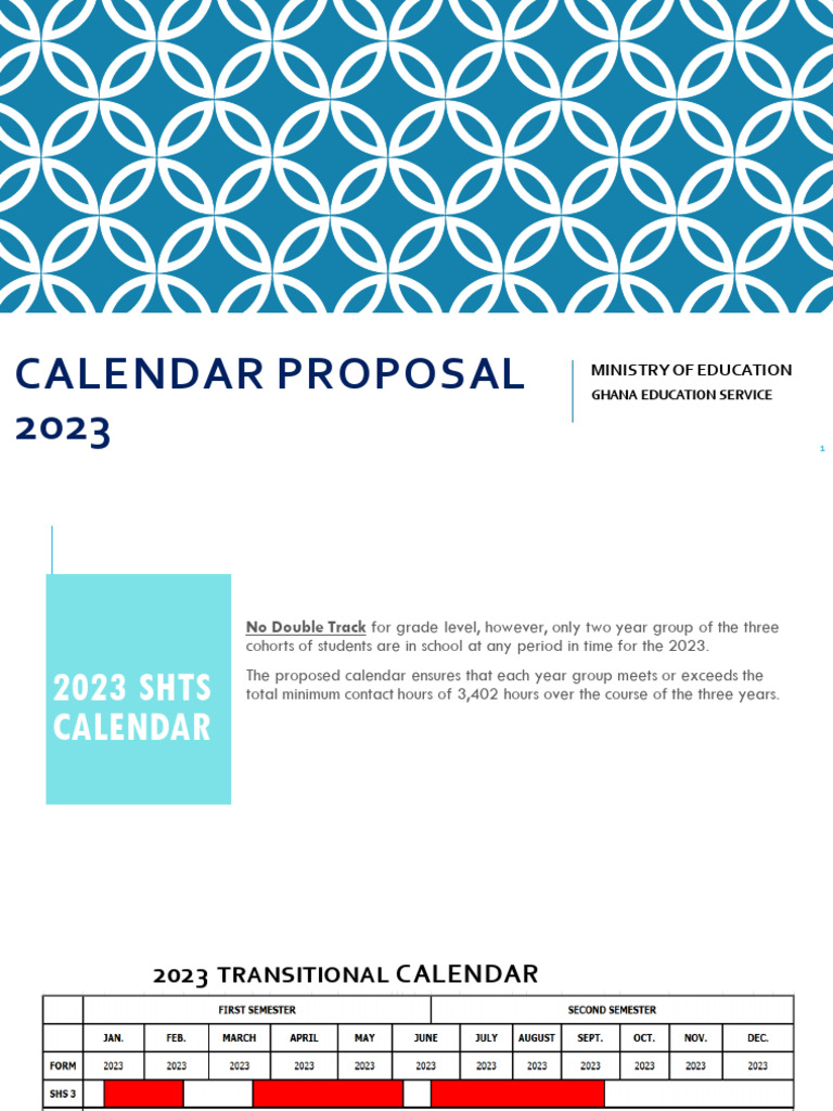 CALENDAR PROPOSAL MINISTRY OF EDUCATION