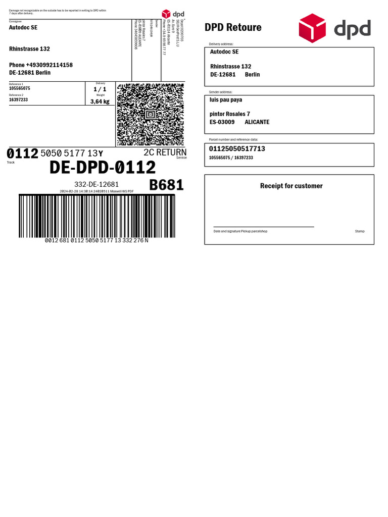 Damage not recognizable on the outside has to be reported in writing to DPD within