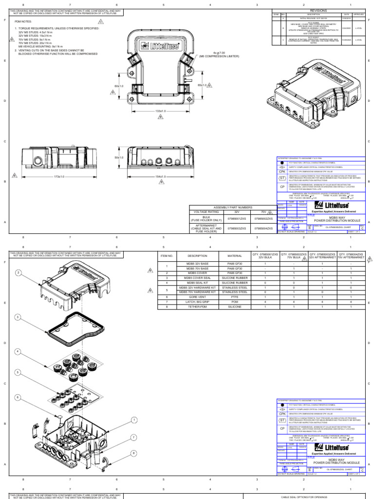 NOT BE COPIED OR DISCLOSED WITHOUT THE WRITTEN PERMISSION OF LITTELFUSE. QTY. 07985001ZXS QTY. 07985002ZXS QTY. 07985003ZXS QTY. 0798004ZXS
