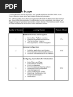 The learning domains and weighting tested by this exam, as well as the percentage of