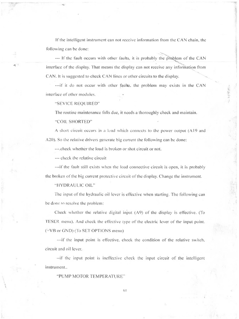 The input of the hydraulie oil lever is effective when starting. The following can