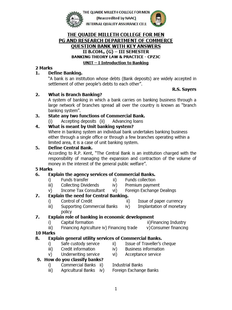 UNIT – I Introduction to Banking