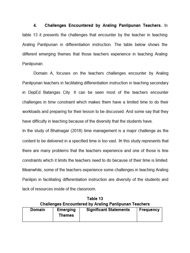 4. Challenges Encountered by Araling Panlipunan Teachers.