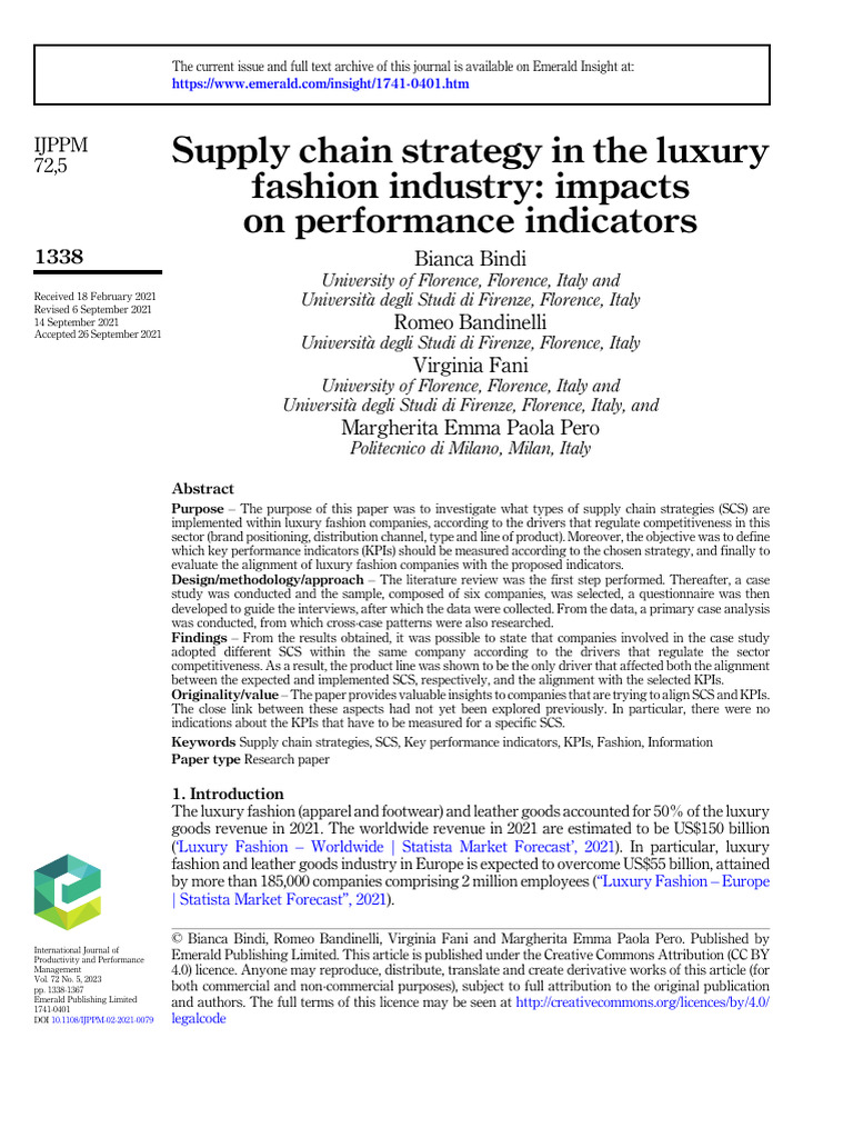 (SCS) and performance measures more adopted in luxury fashion supply chain.