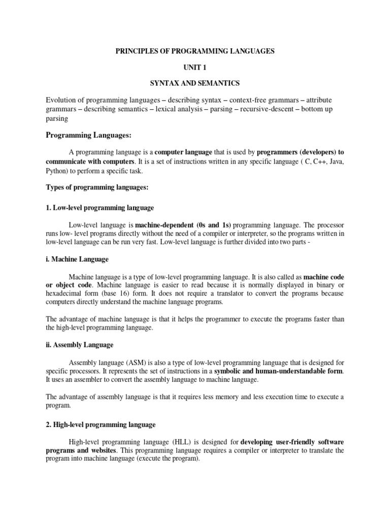PRINCIPLES OF PROGRAMMING LANGUAGES