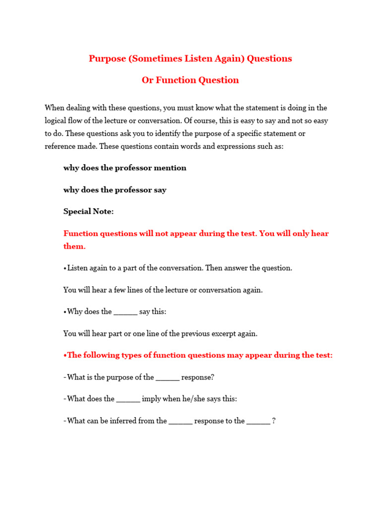 keep in mind is that the listening section of the TOEFL mirrors the reading section in