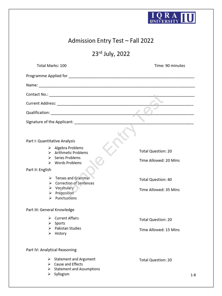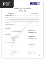 Admission Entry Test – Fall 2022